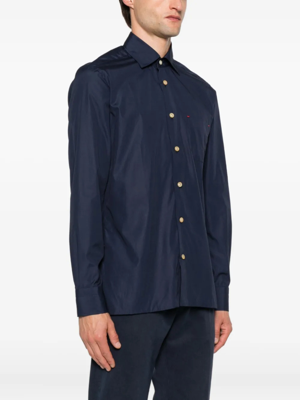 Рубашка Kiton с застежкой на пуговицы и карманом, синий 42 129₽