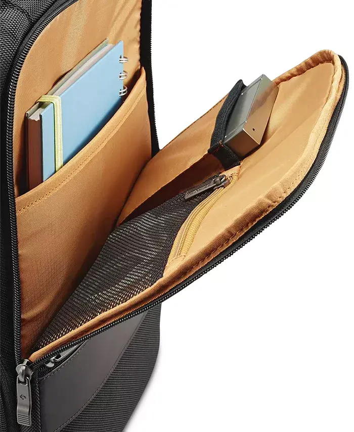 Баллистический нейлон обеспечивает прочность, а кожаная отделка добавляет стиль этому рюкзаку Kombi от Samsonite. Эта классическая сумка имеет современный вид и такие удобства, как отделения для ноутбука и планшета.