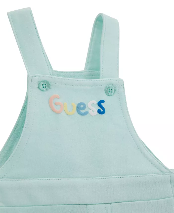 Этот очаровательный детский махровый комбинезон и легкий трикотажный боди отлично подойдут для солнечных дней впереди. По-настоящему особенный комплект с милой аппликацией из трикотажных накладок, увенчанной вышивкой и объемным логотипом GUESS.