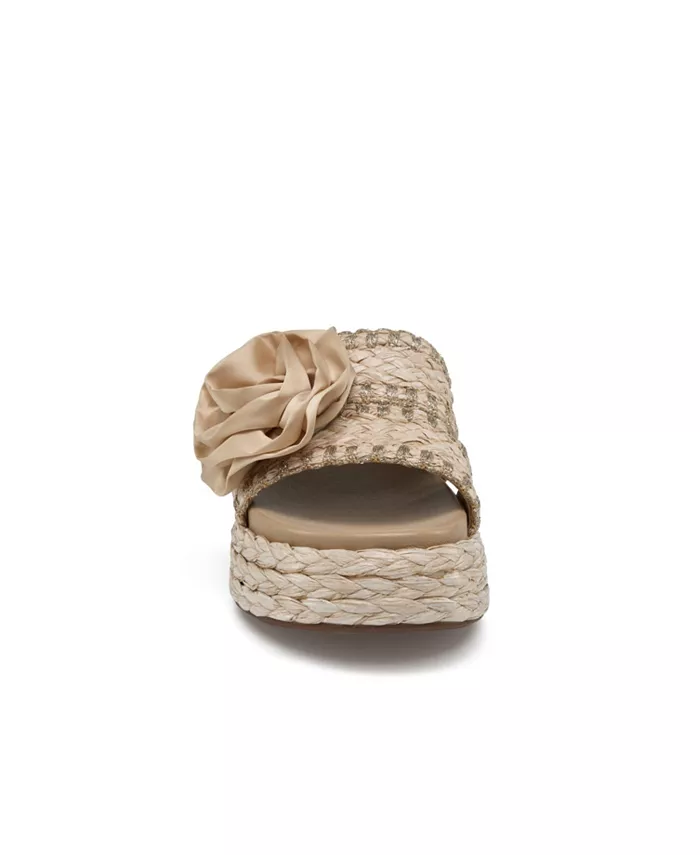 Босоножки на танкетке BREE имеют дизайн платформы из рафии с акцентом на атласный цветок. Стильный и элегантный выбор, чтобы добавить немного очарования вашим нарядам для теплой погоды.