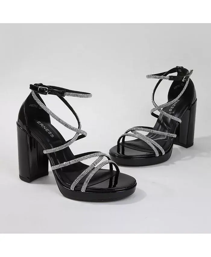 Шагните в сверкающую изысканность с босоножками на каблуке GRETTA. Спроектированные с ослепительными ремешками из стразов, поддерживающим блочным каблуком и современной платформой, они идеально подойдут для любого особого случая.