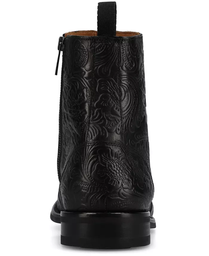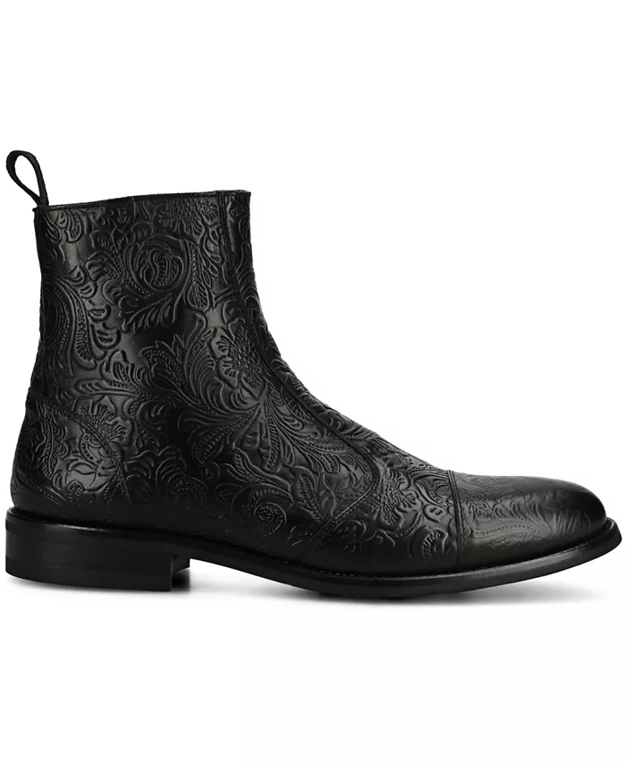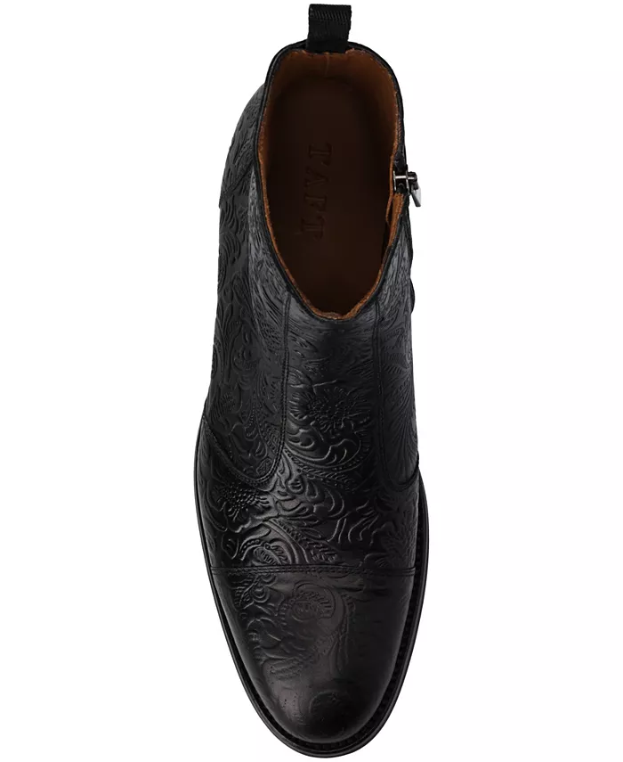 Ботинки Lewis Noir Viejo от Taft — это элегантные ботильоны с ярким черным тисненым цветочным узором и полированной отделкой. Они сочетают в себе класс и практичность благодаря внутренней молнии, конструкции из цельнозерновой испанской телячьей кожи, подошве из резины с шипами и мягкой стельке для комфорта в течение всего дня.