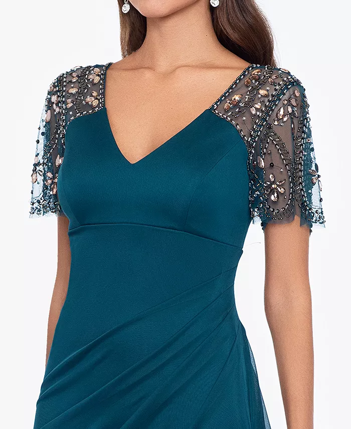 Платье с вышитыми бисером рукавами XSCAPE, зеленый