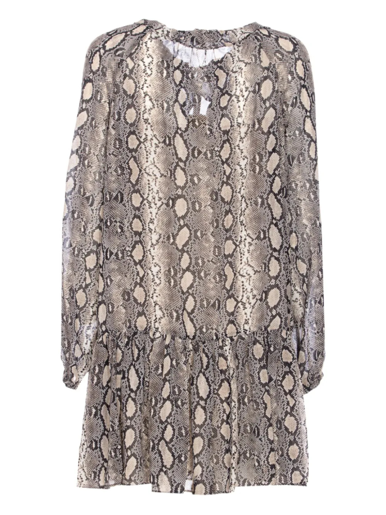 Платье Michael Michael Kors со змеиным принтом и оборками, серый