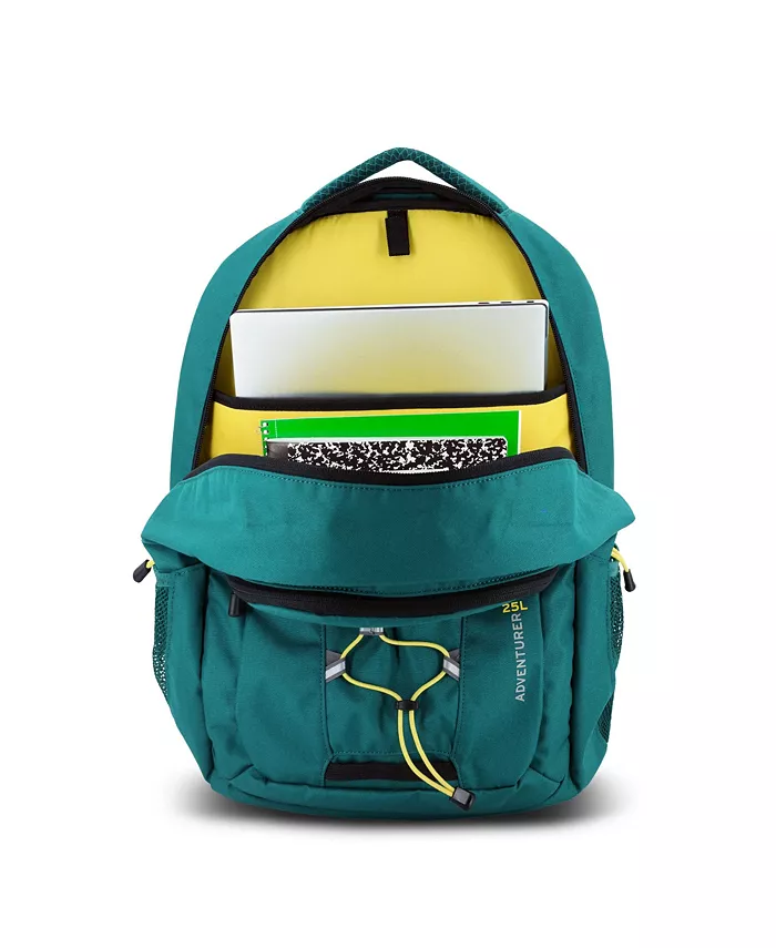 Рюкзак Eddie Bauer Adventurer 25 литров имеет водоотталкивающую отделку, которая отталкивает влагу, охлаждающую заднюю панель, которая сохраняет сухость, и карманы для планшета, телефона и ноутбука. Эта компактная версия нашего самого популярного рюкзака из полиэстера плотностью 600 денье идеально подходит для любителей активного отдыха или для простого похода.