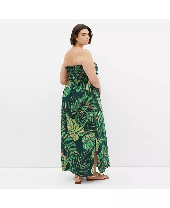Платье макси Plus Size Peta Palm CITY CHIC, зеленый