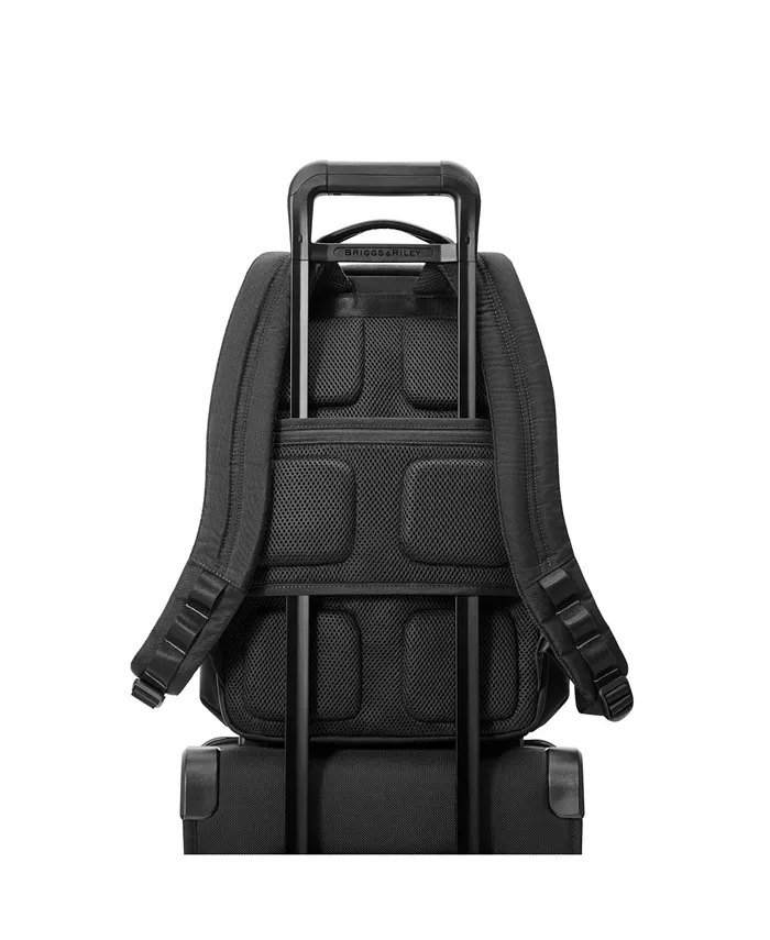 Сквозная задняя панель позволяет надевать сумку на любую внешнюю ручку Briggs & Riley, что обеспечивает удобную транспортировку двух сумок как одной.