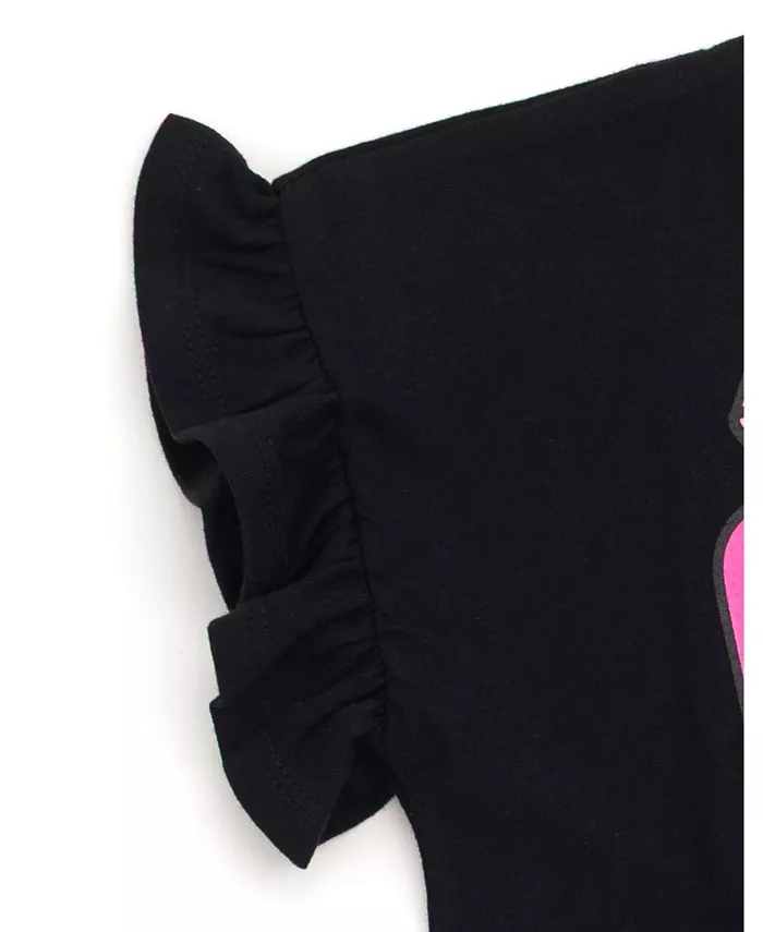 Ощути стиль Барби в этом милом комплекте из рубашки с короткими рукавами и леггинсов с ее классическим логотипом. Идеально подходит для юных поклонников Барби.