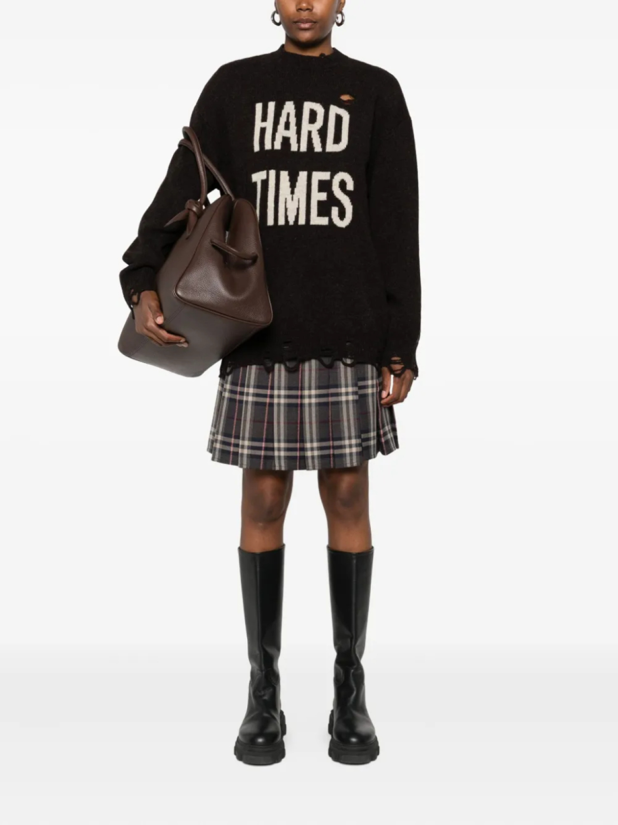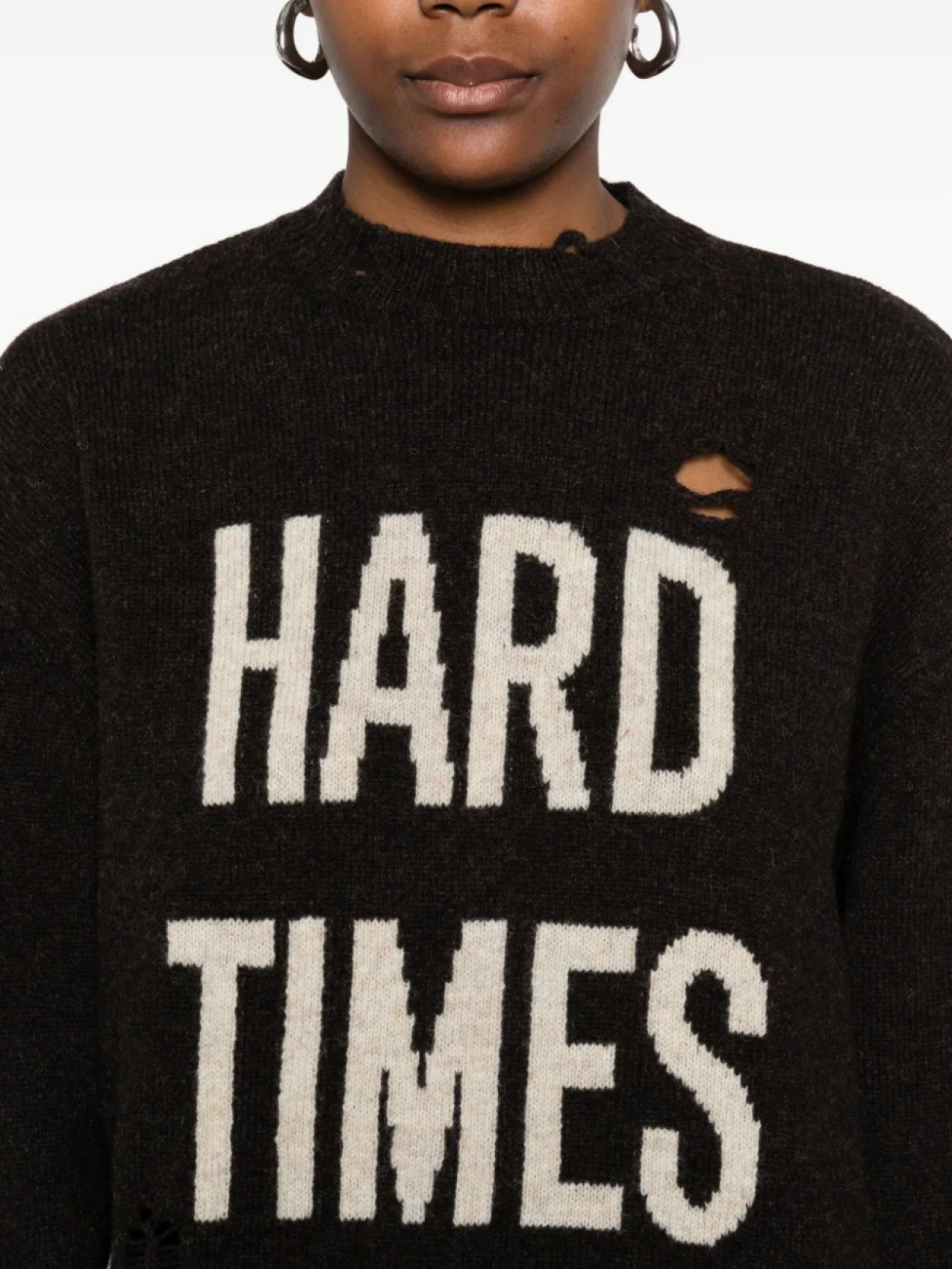 Потертый свитер Moschino с круглым вырезом, коричневый