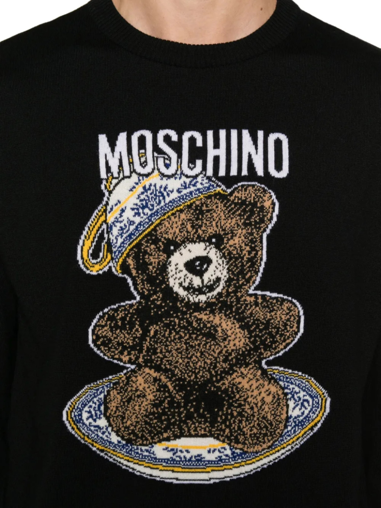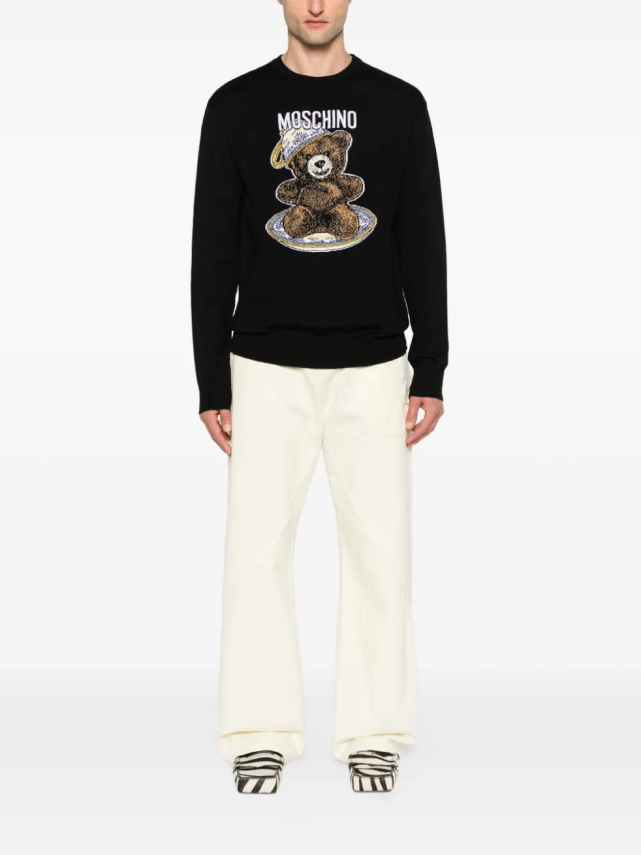 Шерстяной джемпер Moschino teddy-intarsia, черный