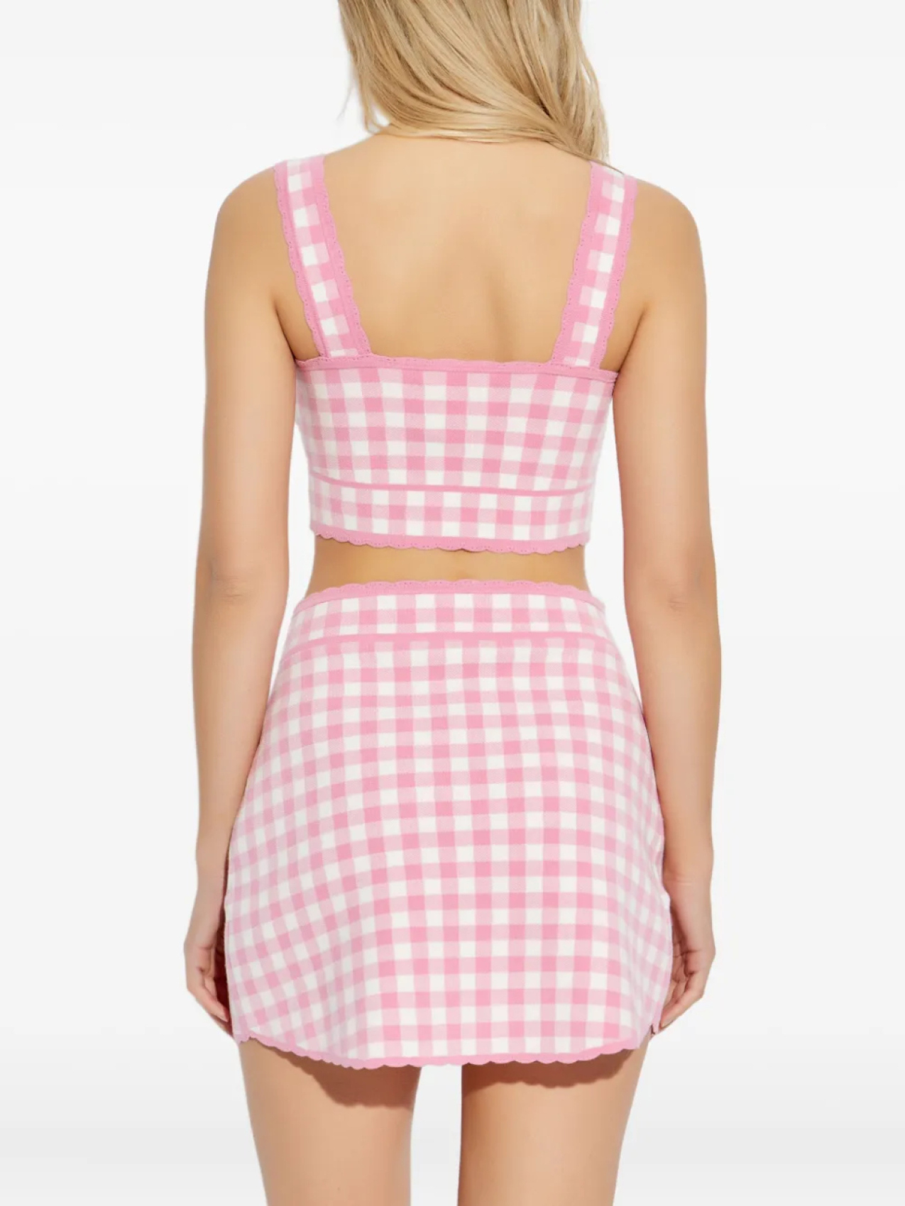 Топ LoveShackFancy в клетку гингем с фестончатым краем, розовый