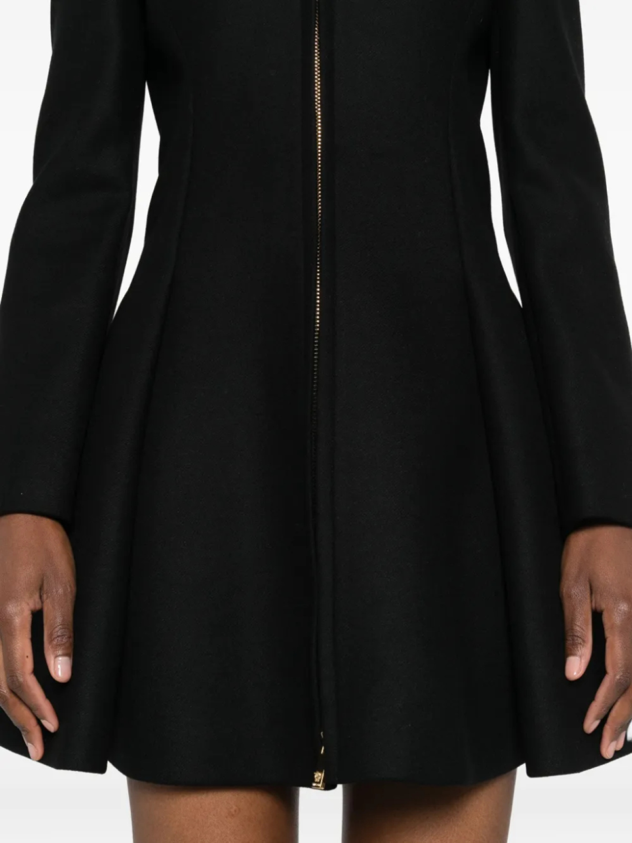 Расклешенное пальто Versace с застежкой-молнией спереди, черный 172 753₽