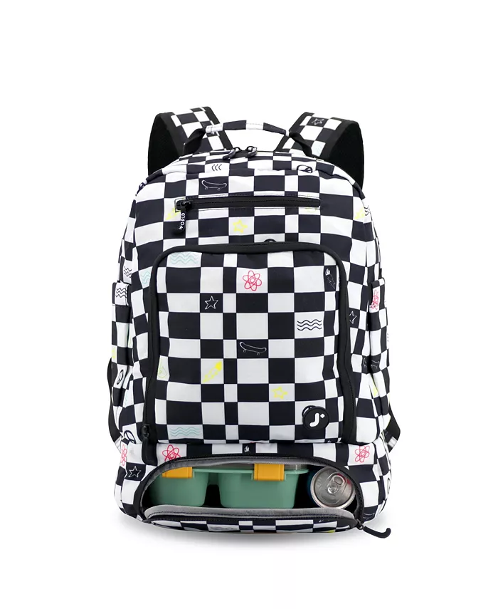 Встроенная термосумка для ланча сохраняет еду свежей и предотвращает ее порчу. Три больших отделения вмещают ноутбук, планшет, книги и предметы первой необходимости для повседневного использования. Два внутренних расширяющихся кармана надежно удерживают бутылки с водой или напитками. Карман на молнии для надежного хранения мелких предметов, таких как ключи или аксессуары. Большой передний карман на молнии обеспечивает быстрый доступ к необходимым вещам, таким как телефоны или ручки. ВНИМАНИЕ: ОПАСНОСТЬ УДУШЕНИЯ — Содержит мелкие детали. Не подходит для детей младше 3 лет. 600D ПОЛИЭСТЕР