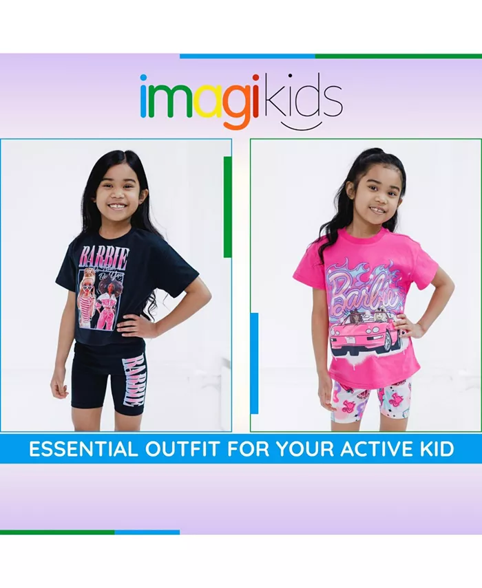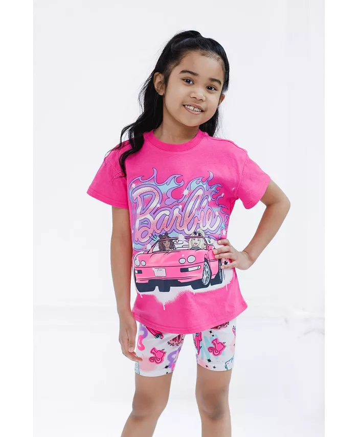 Комплект одежды для девочек Барби: укороченная свободная футболка и велосипедные шорты, от малышей до взрослых детей