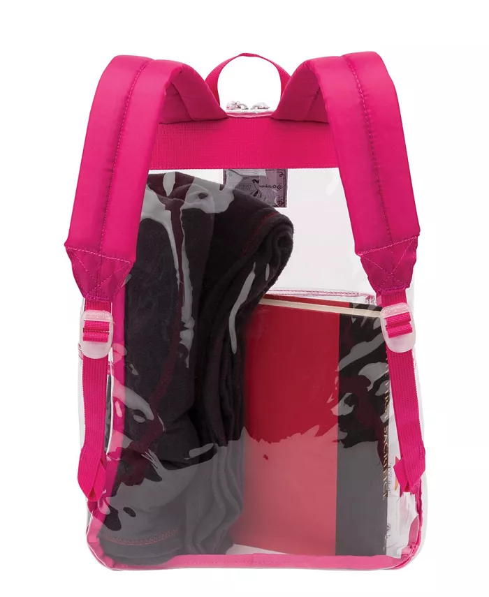 Рюкзак Clear Pass Daypack с передним карманом на молнии и регулируемыми ремнями обеспечивает достаточно места для хранения книг, школьных принадлежностей и многого другого. Прозрачный пластиковый материал конструкции позволяет легко быстро идентифицировать и находить содержимое в любое время. Он также подходит для путешествий и достаточно мал для ребенка, а также достаточно велик для взрослого. Плечевые ремни имеют мягкую подкладку для удобного ношения, легкой переноски и распределения нагрузки. Передний карман и основной карман закрываются прочными молниями, фиксируя наушники и другие мелкие предметы. Рюкзак также оснащен верхней ручкой, которая позволяет повесить его на крючок, на дверь или в шкафчик.
