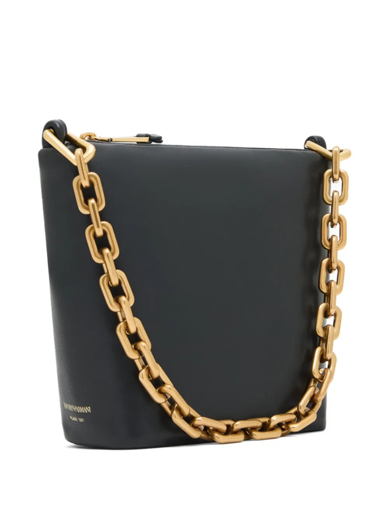 Сумка через плечо из кожи с цепочкой Emporio Armani, черный