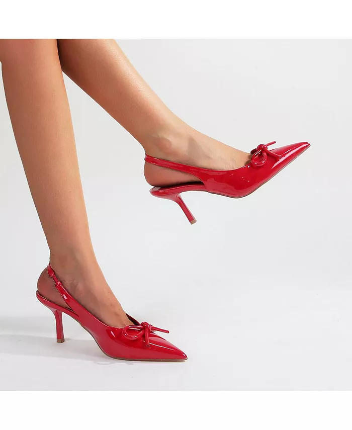 Туфли Cree с открытой пяткой имеют глянцевую отделку и очаровательный бант, создавая идеальный баланс между игривостью и утонченностью.