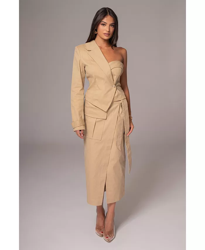 Эта юбка с элегантным разрезом сбоку и завязывающимися лентами сочетает в себе элегантность с нотками городского стиля и идеально подходит для любого случая.