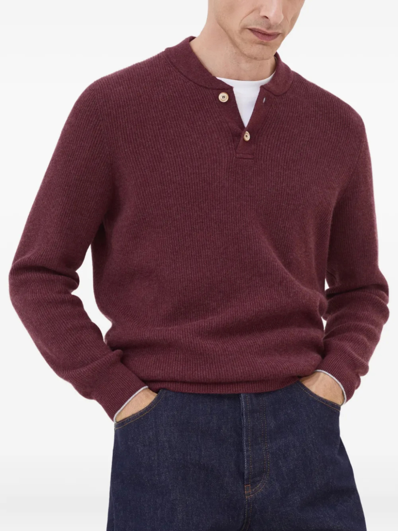 Свитер-хенли в рубчик от Brunello Cucinelli, красный