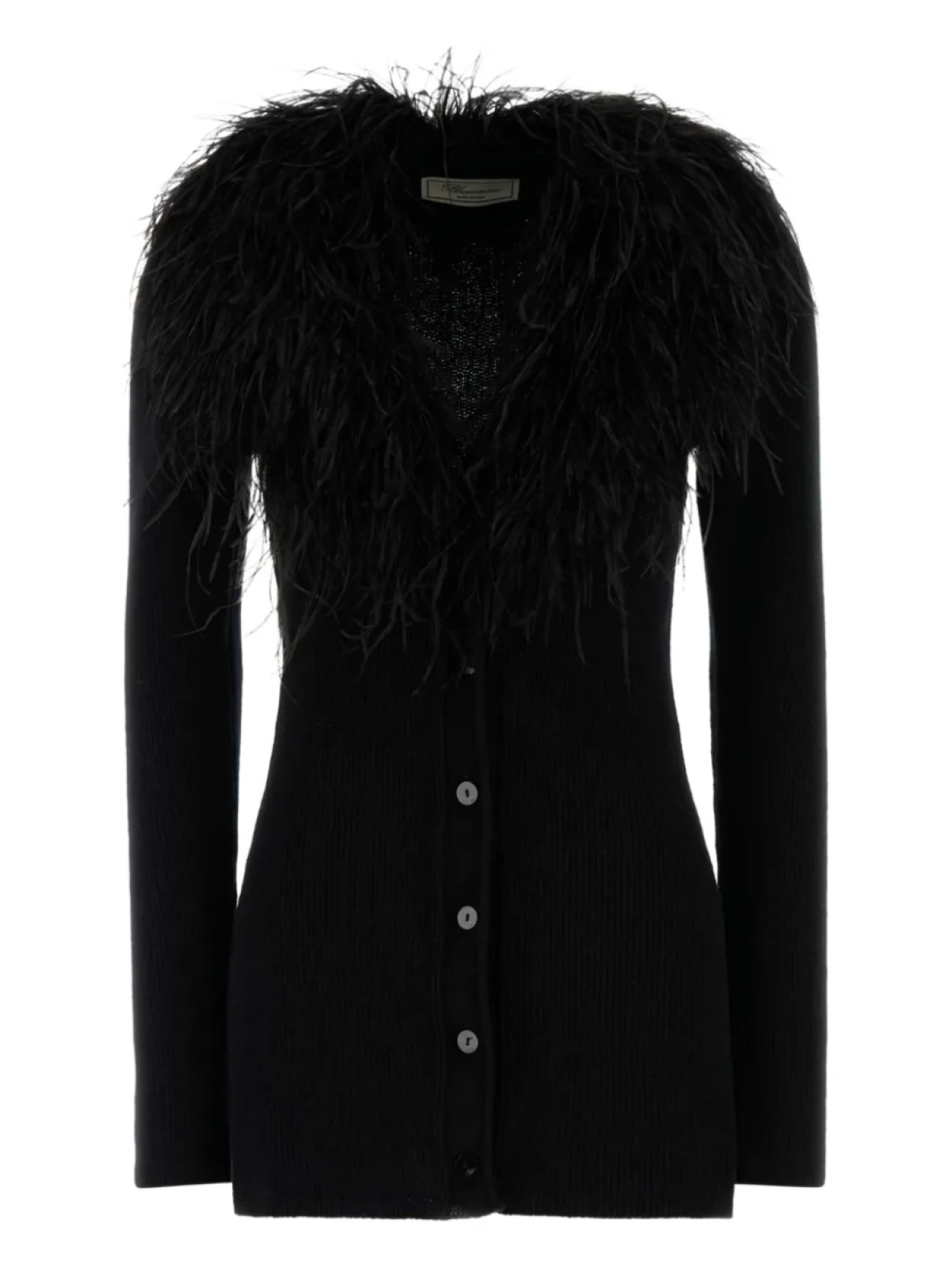 Шерстяной кардиган Blumarine с отделкой из перьев, черный