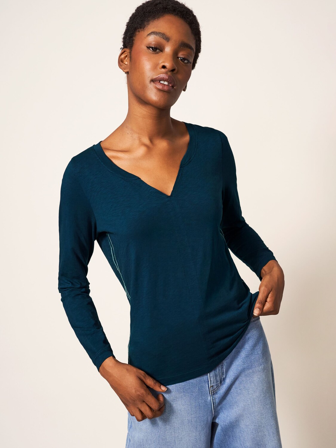 Хлопковый топ с длинными рукавами White Stuff Nelly, темно-синий