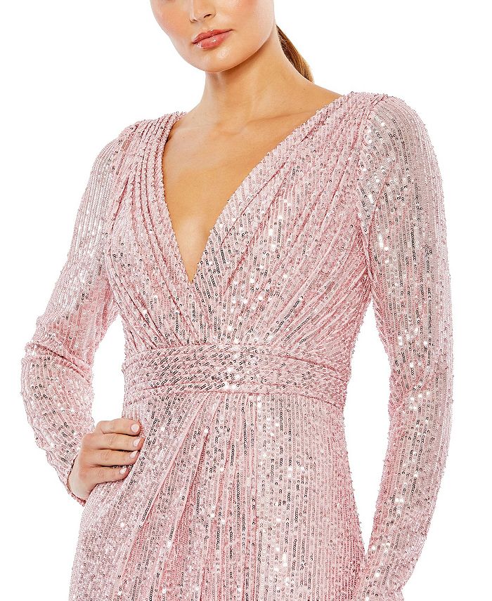 Блестящее платье с длинными рукавами Mac Duggal, розовый 45 665₽