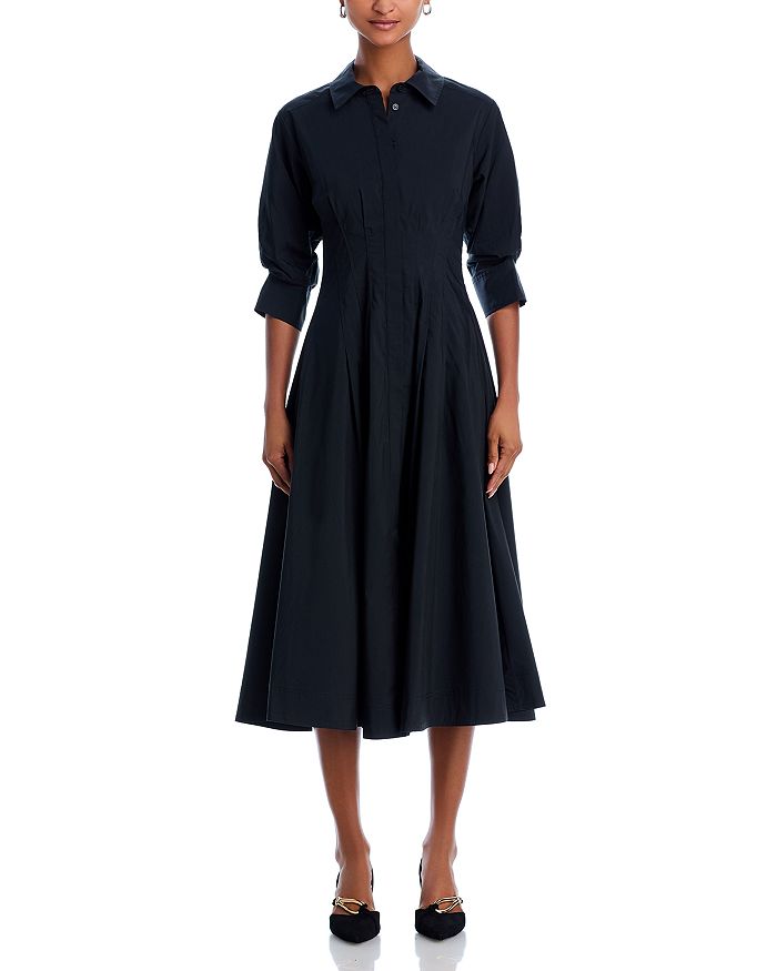 Джазовый платье миди с защипами из поплина SIMKHAI, черный