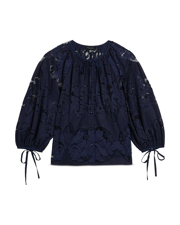 Блузка с кружевными рукавами-фонариками Ted Baker, синий