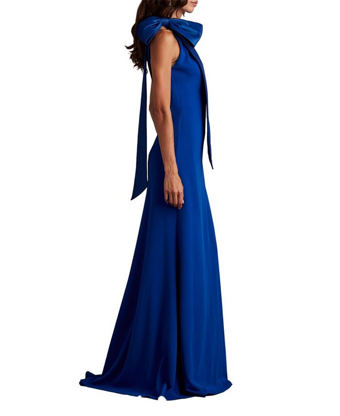 Вечернее платье Sims с бантом на плече из тафты Tadashi Shoji, синий