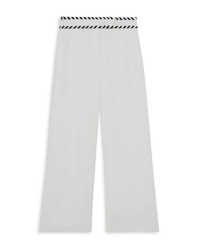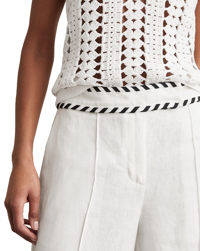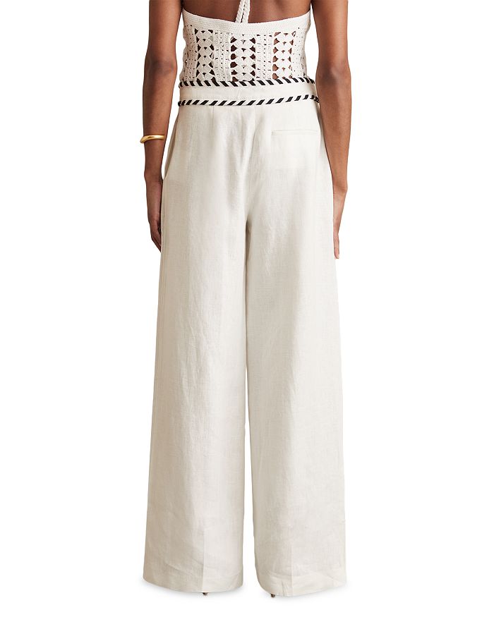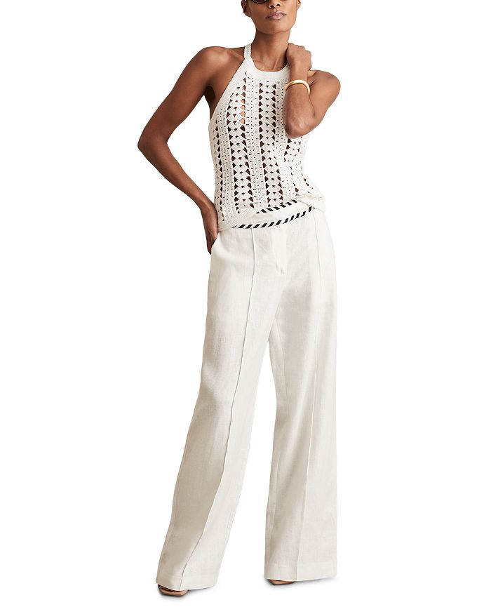 Широкие льняные брюки цвета оленёнка REISS, белый