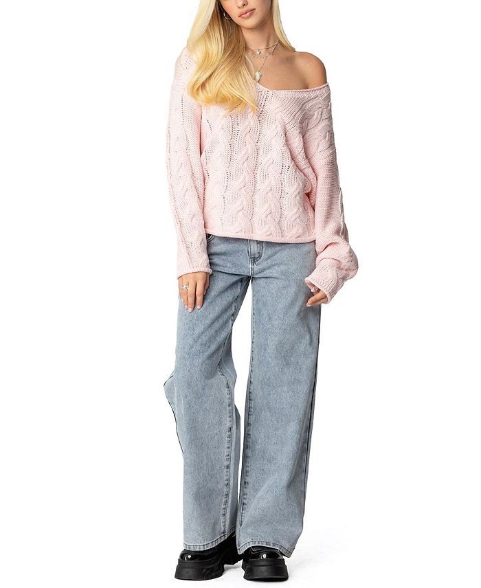 Ингер Объемный Свитер с Косой Вязкой Edikted, розовый