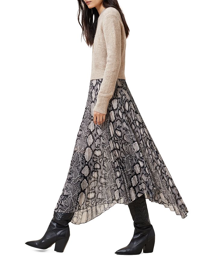 Платье: подол в виде платка; плиссированная юбка; принт под змеиную кожу; в стиле пуловера