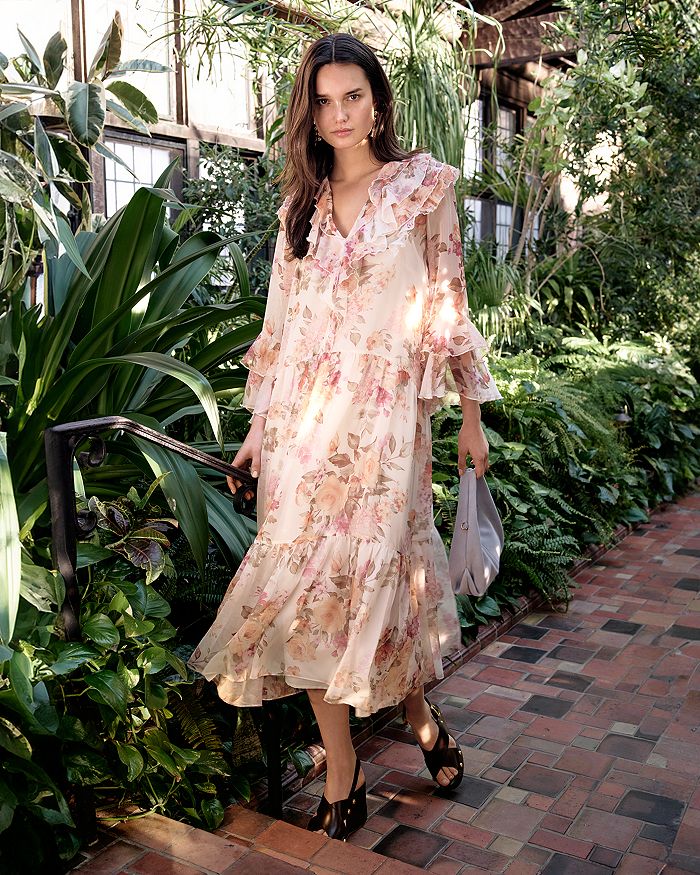 Цветочное платье макси с рюшами - эксклюзив AQUA, мультиколор
