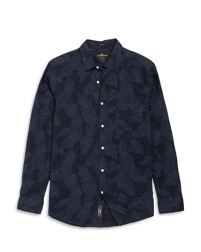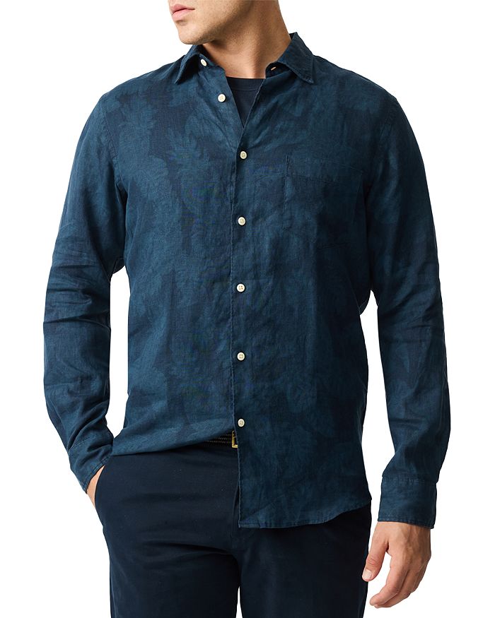 "North River" Слим Фит Рубашка из Льна с Принтом Rodd & Gunn, синий