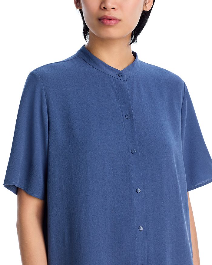 Шелковое платье-рубашка с воротником-стойкой Eileen Fisher, синий