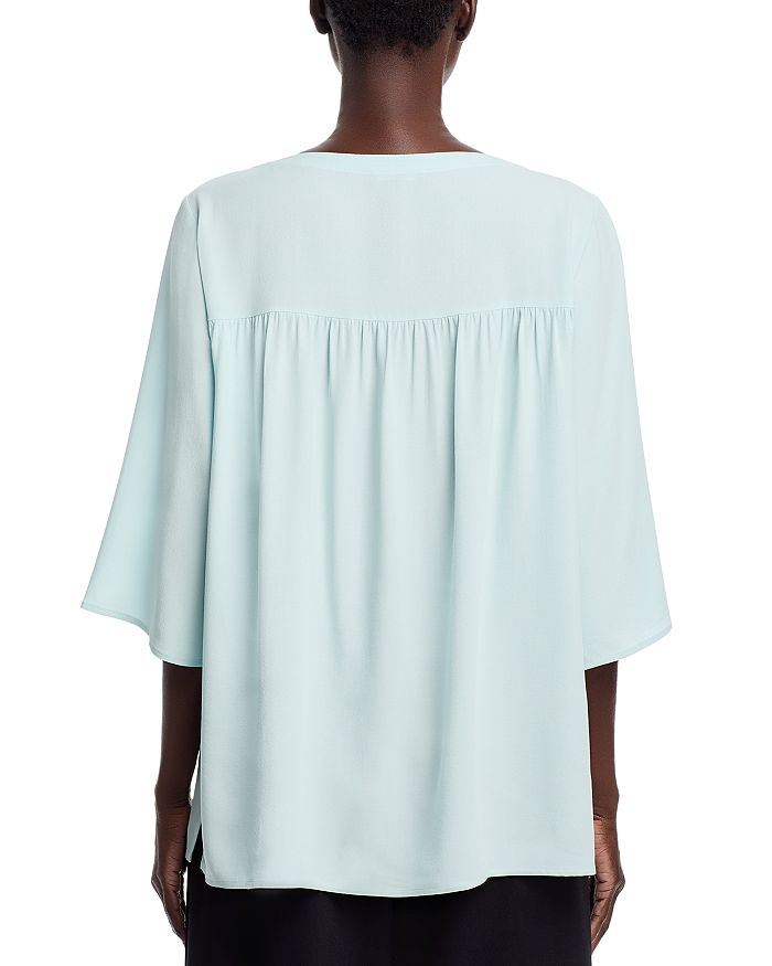 Шелковый топ с воротником-стойкой Eileen Fisher, синий