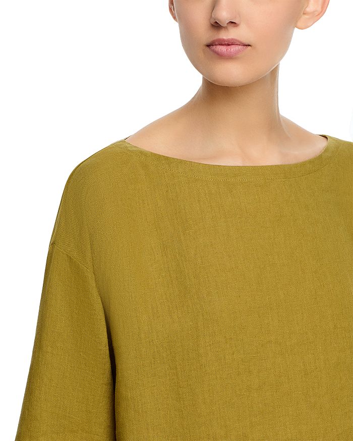 Льняной топ с лодочкой Eileen Fisher, зеленый