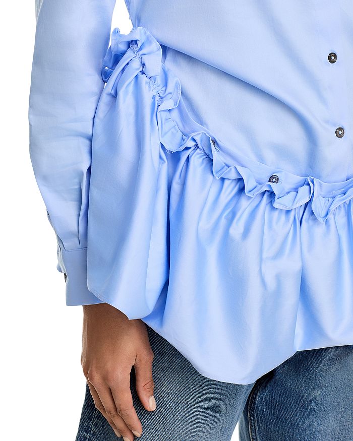 Спущенные плечи, длинные рукава с манжетами на пуговицах