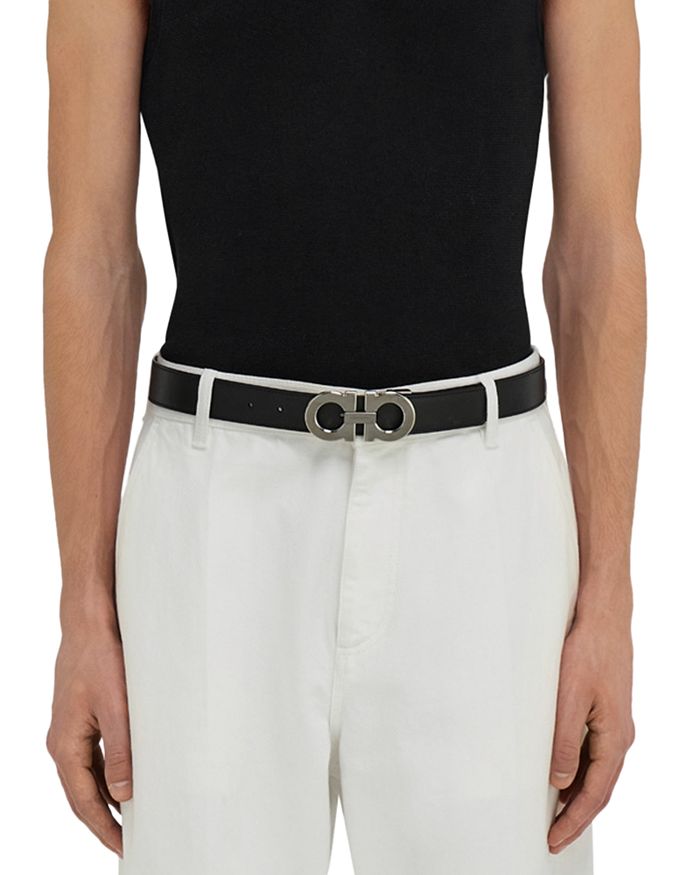 Мужской реверсивный кожаный ремень Double Gancini FERRAGAMO, черный