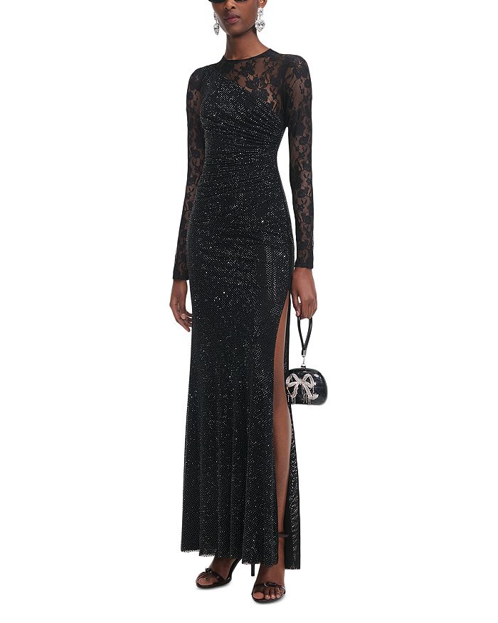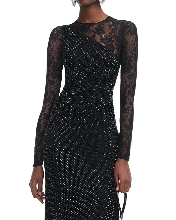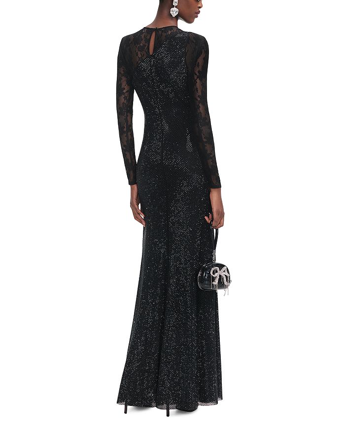 Черное макси-платье с кружевными рукавами и стразами Self-Portrait, черный 102 646₽