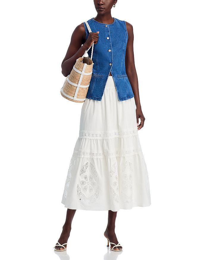 Вышитая макси-юбка T Tahari, белый