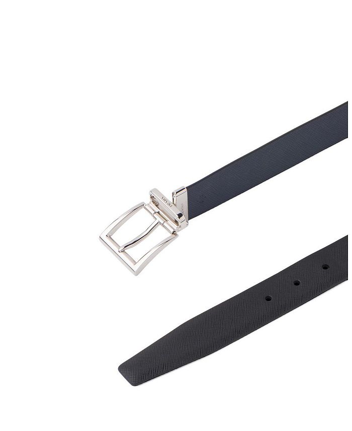 Двухцветная сафьяновая кожа, двусторонний, пряжка из полированной стали, выгравированный логотип Prada