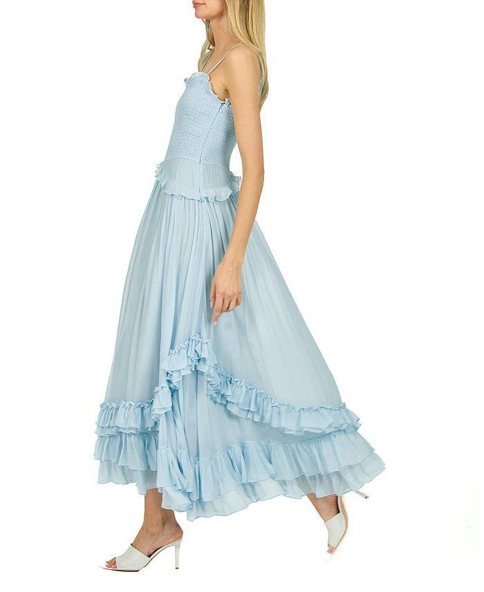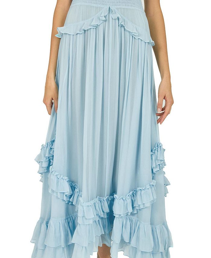 Одно из наших платьев-бестселлеров вернулось в облачно-голубом цвете. Это обязательное макси-платье элегантно и шикарно. Модель юбки вдохновлена винтажным кроем, романтичными оборками и струящейся формой.