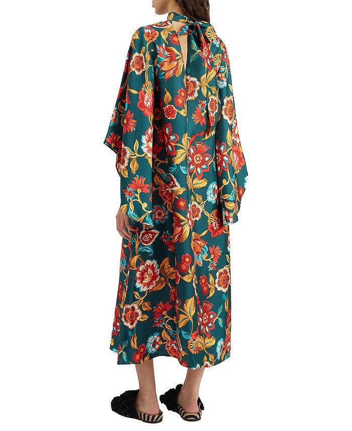 Платье Magnifico, которое вы все знаете и в котором ошеломляете, но скроено с более коротким подолом миди, чтобы привнести больше роскоши в ваш повседневный гардероб. Как и его сестра, оно имеет воротник-стойку, длинный пояс сзади и драпированные рукава-водопад, и сшито из нашего роскошного шелкового твила с тонким переплетением и блеском. Сделайте так, как это делает JJ, и переверните его для столь же соблазнительного вида!