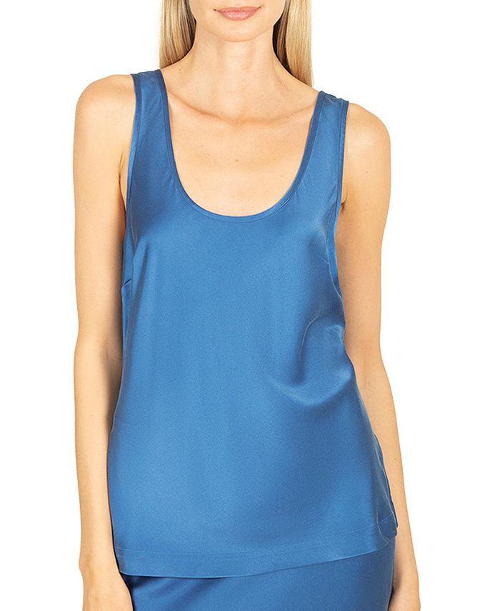 Майка "Lara" имеет классический силуэт с круглым вырезом и боковыми разрезами из 100% шелка. Сочетайте ее с гладкой шелковой юбкой для солнечного дня.