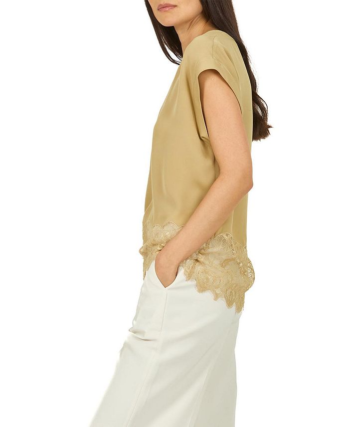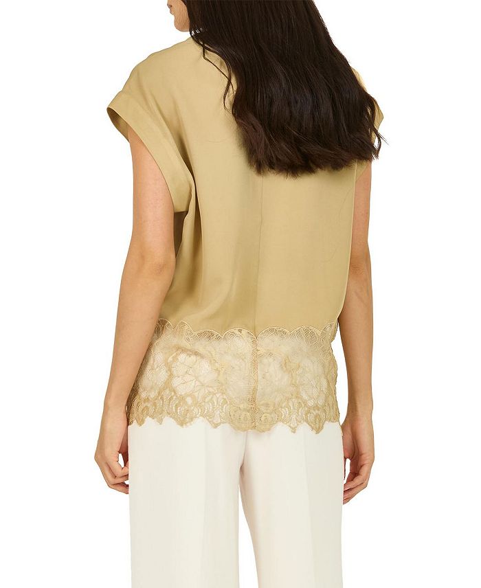Этот классический топ выполнен из двойного шелкового жоржета с кружевной отделкой.