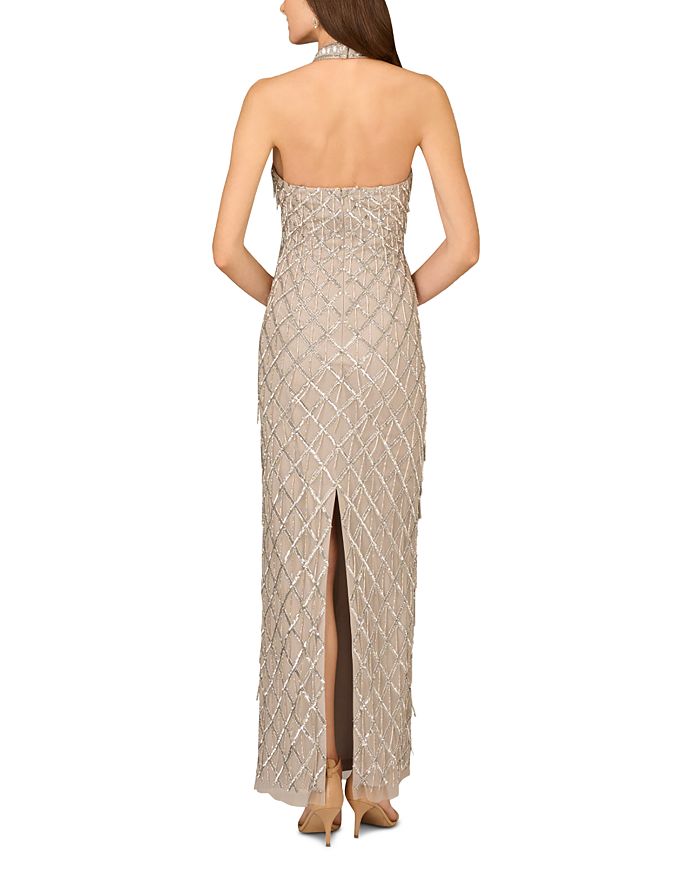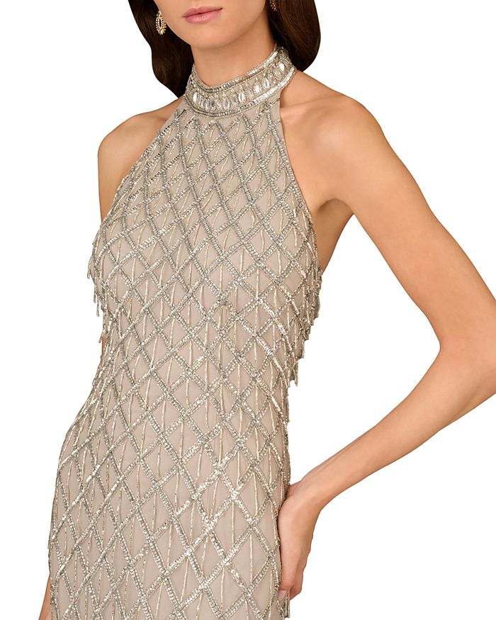 Бусированное платье-халтер Aidan Mattox, серебряный