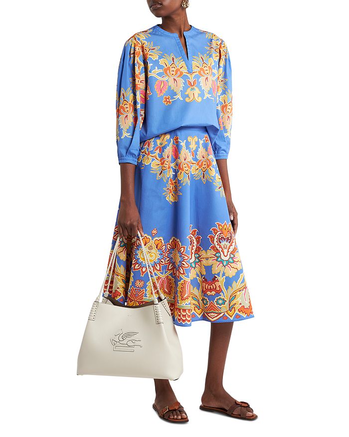 Блузка с разрезом на шее в стиле пейсли Etro, синий 44 837₽