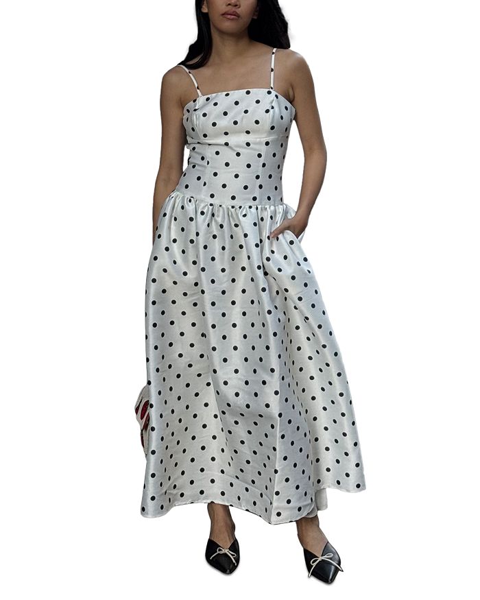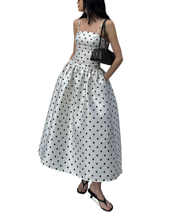 Платье миди с рюшами в горошек FRENCH CONNECTION, белый