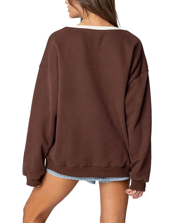76 Свитер с V-образным вырезом оверсайз Edikted, коричневый
